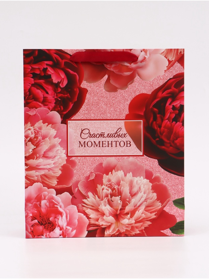 Пакет подарочный вертикальный «Счастливых моментов», 25.5×30×9 см