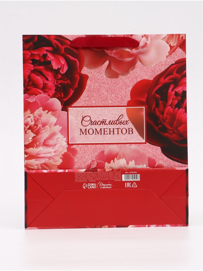 Пакет подарочный вертикальный «Счастливых моментов», 25.5×30×9 см — Характеристики