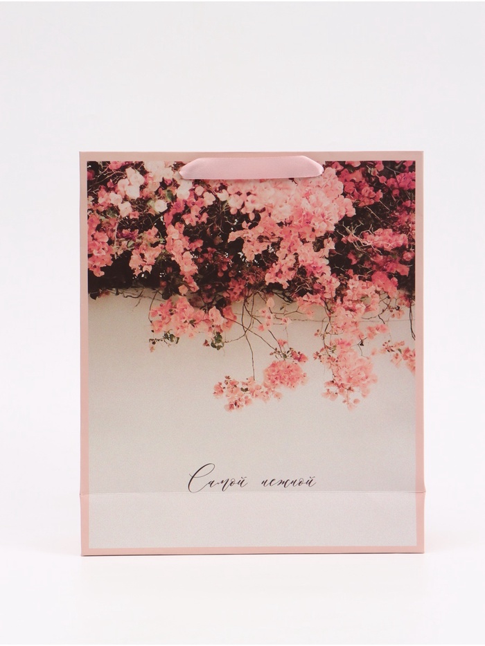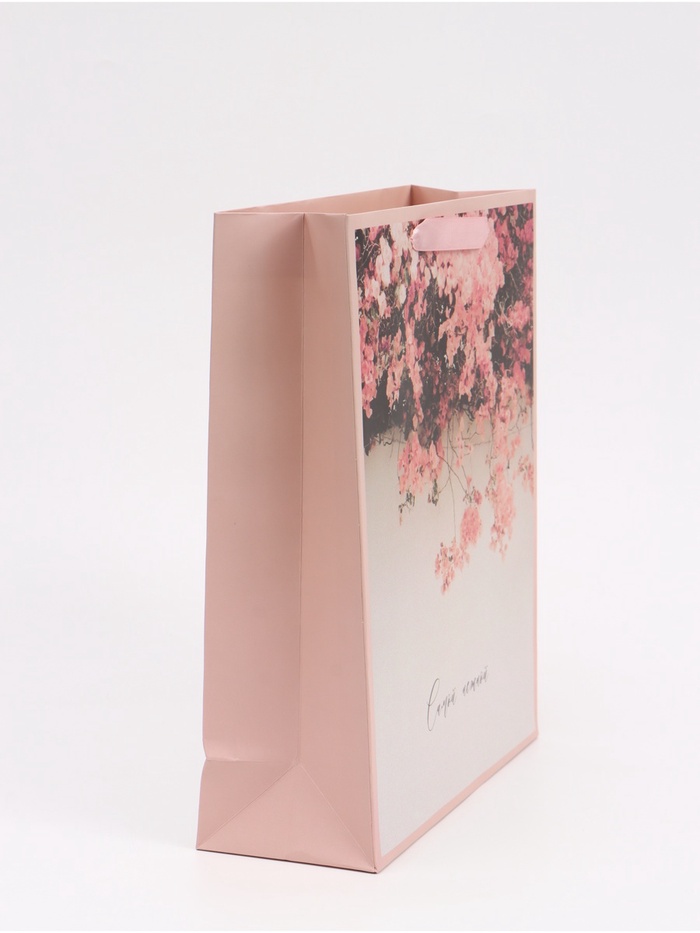 Пакет подарочный вертикальный «Табебуйя розовая», M 25.5×30×9 см — Характеристики