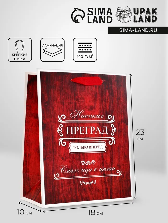 Пакет подарочный вертикальный «Только вперёд», 18×23×10 см — Характеристики
