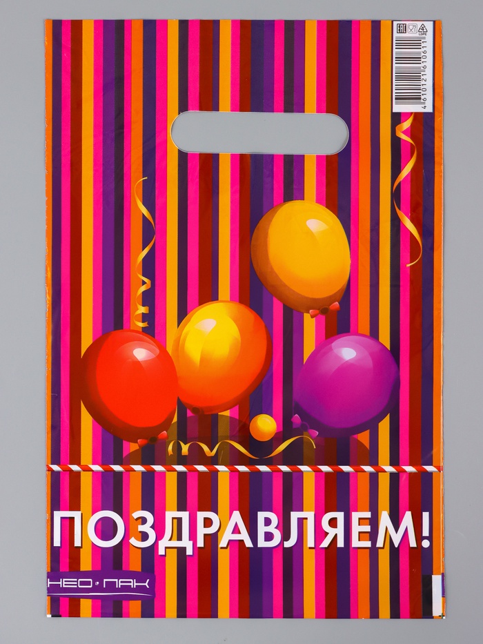 Пакет подарочный «Веселого дня рождения!», полиэтиленовый с вырубной ручкой, 20×30 см, 30 мкм — Характеристики