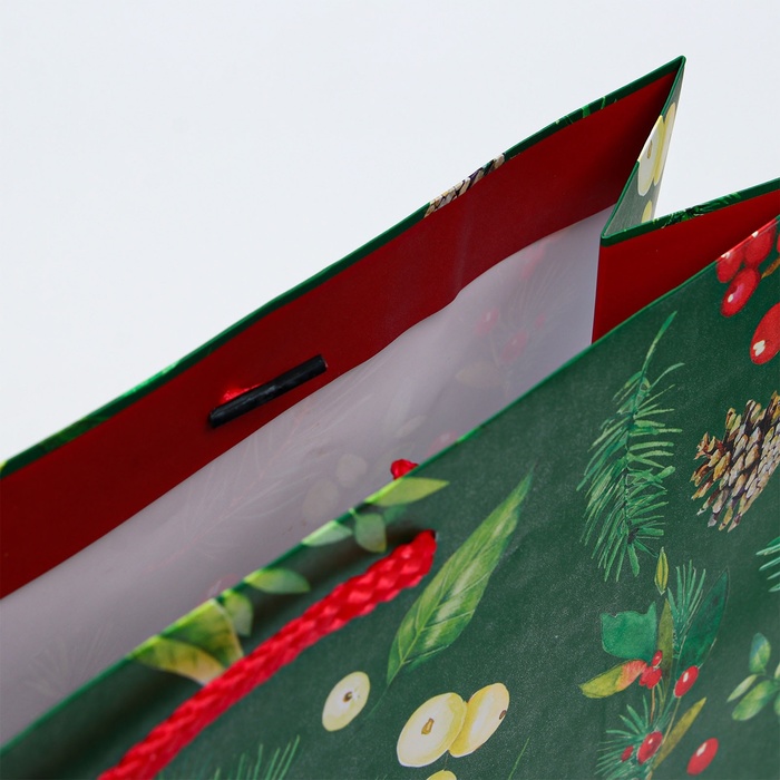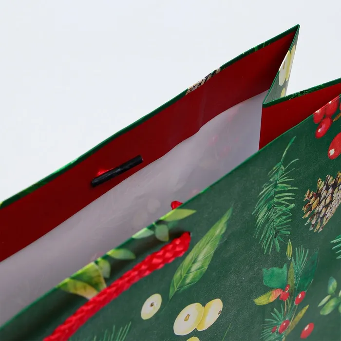 Подарочный новогодний пакет имеет оптимальные размеры, позволяющие упаковать различные предметы, от небольших сувениров до крупных подарков. Он также может быть использован для хранения и транспортировки продуктов питания, например сладких подарков под ёлку, так как материал, из которого он изготовлен, является безопасным для контакта с пищевыми продуктами.
