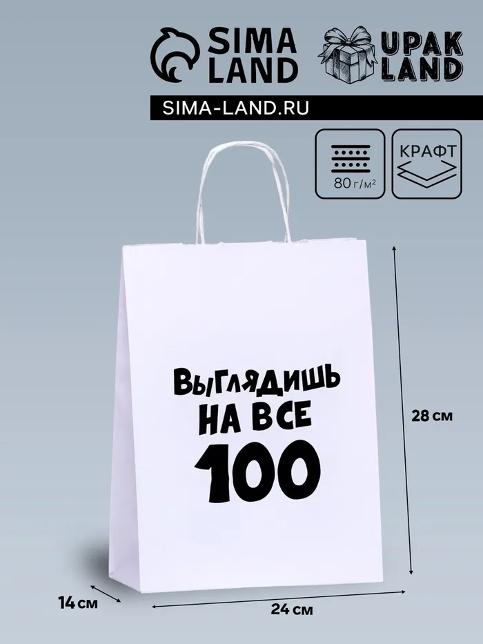 Пакет подарочный «Выглядишь на все 100», 24×14×28 см — Характеристики