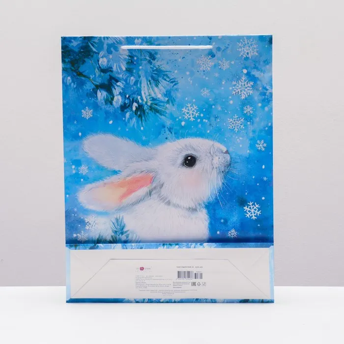 Новогодний подарочный пакет с ярким, красочным рисунком создаст праздничное настроение.