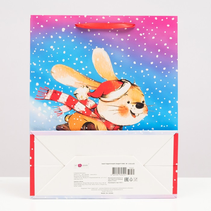 Пакет подарочный «Зайчик на санках» , 26×32×12 см — Характеристики