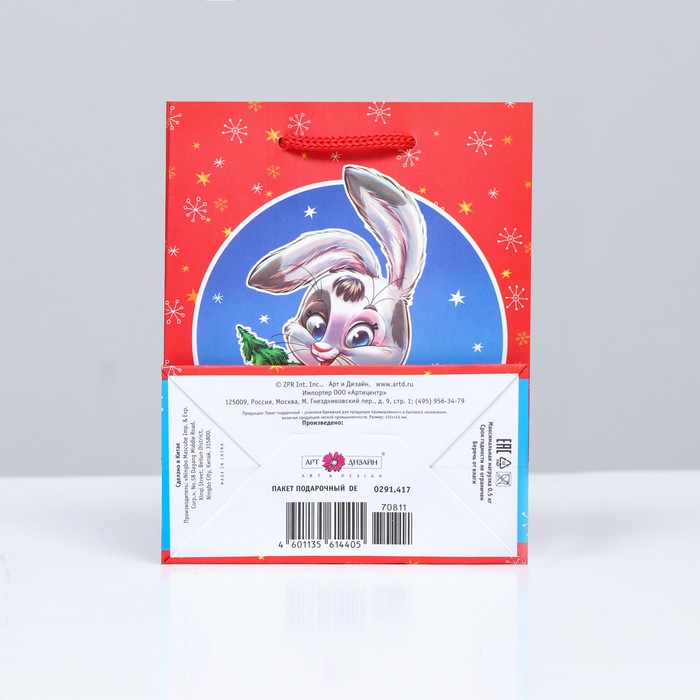 Пакет подарочный "Зайчик с ёлкой" , 11,5 х 14,5 х 6,5 см. — Характеристики