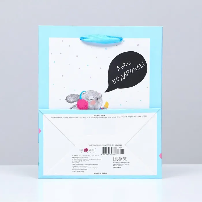 Пакет подарочный «Зайчик с пожеланиями» , 18×22.3×10 см — Характеристики