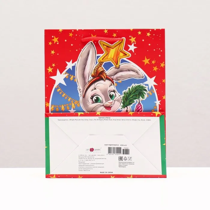 Пакет подарочный "Зайчик звёздочка" , 18 х 22,3 х 10 см. — Характеристики
