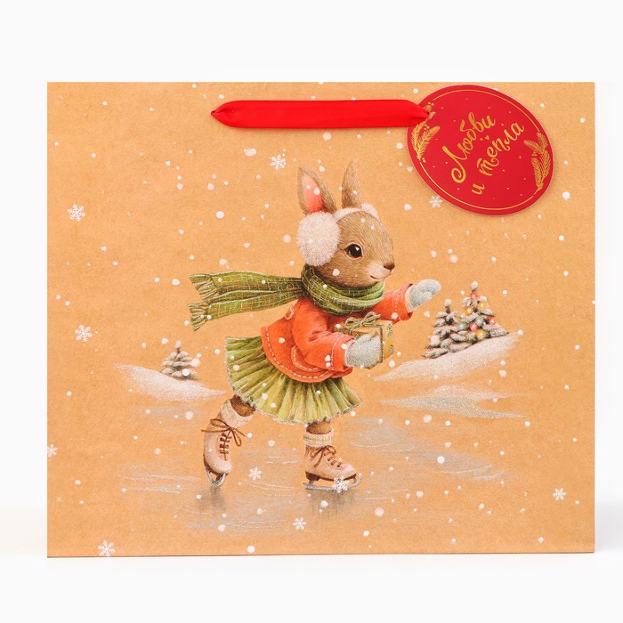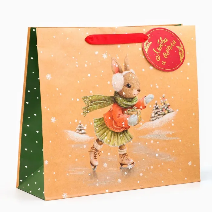 Пакет подарочный «Зайка на льду», люкс, 36×32×12 см — Характеристики
