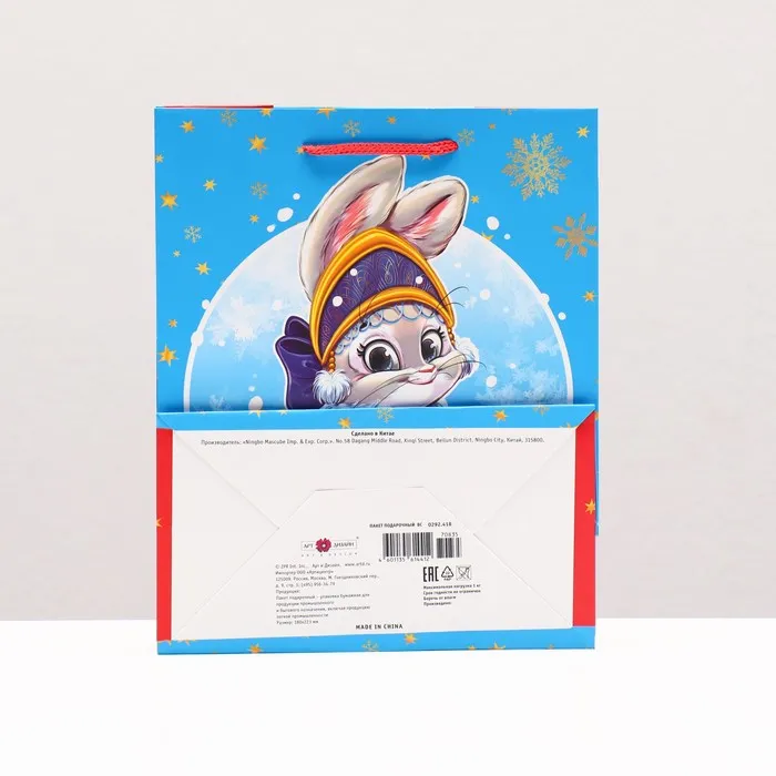 Пакет подарочный "Зайка снегурочка" , 18 х 22,3 х 10 см. — Характеристики
