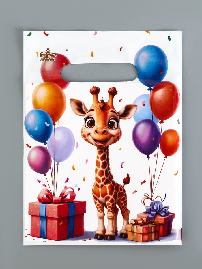Пакет подарочный «Жирафик», полиэтиленовый с вырубной ручкой, 19×25 см, 30 мкм — Характеристики