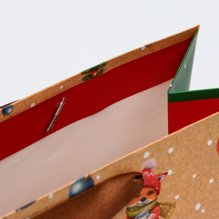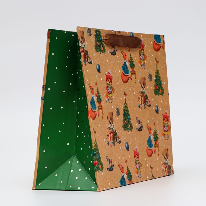 Подарочный новогодний пакет имеет оптимальные размеры, позволяющие упаковать различные предметы, от небольших сувениров до крупных подарков. Он также может быть использован для хранения и транспортировки продуктов питания, например сладких подарков под ёлку, так как материал, из которого он изготовлен, является безопасным для контакта с пищевыми продуктами.