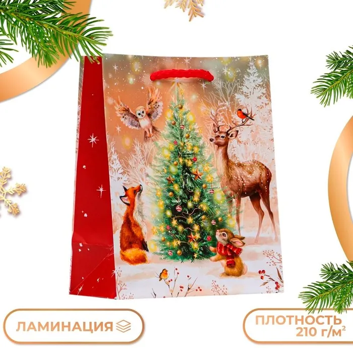 Пакет подарочный «Зверята у ёлки», 11.5×14.5×6.5 см — Характеристики