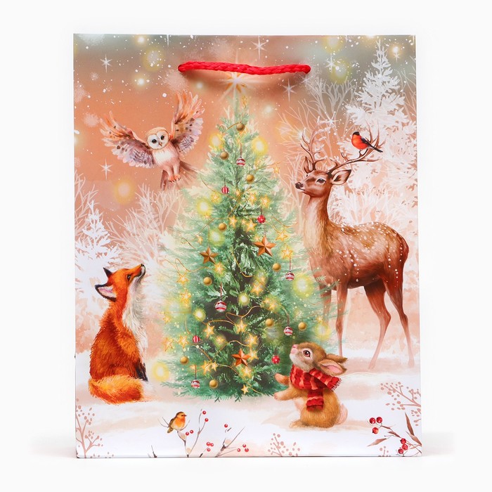 Пакет подарочный «Зверята у ёлки», 18×22.3×10 см — Характеристики