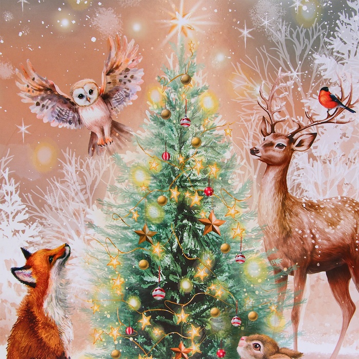 Подарочный новогодний пакет имеет оптимальные размеры, позволяющие упаковать различные предметы, от небольших сувениров до крупных подарков. Он также может быть использован для хранения и транспортировки продуктов питания, например сладких подарков под ёлку, так как материал, из которого он изготовлен, является безопасным для контакта с пищевыми продуктами.