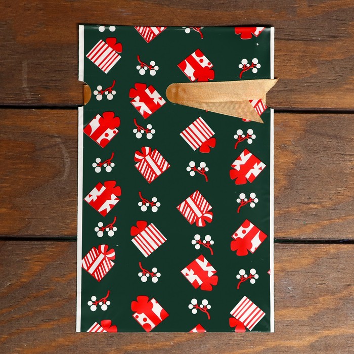 Пакет полиэтиленовый подарочный "Новогодние подарки", с завязками, 15*23см. — Характеристики