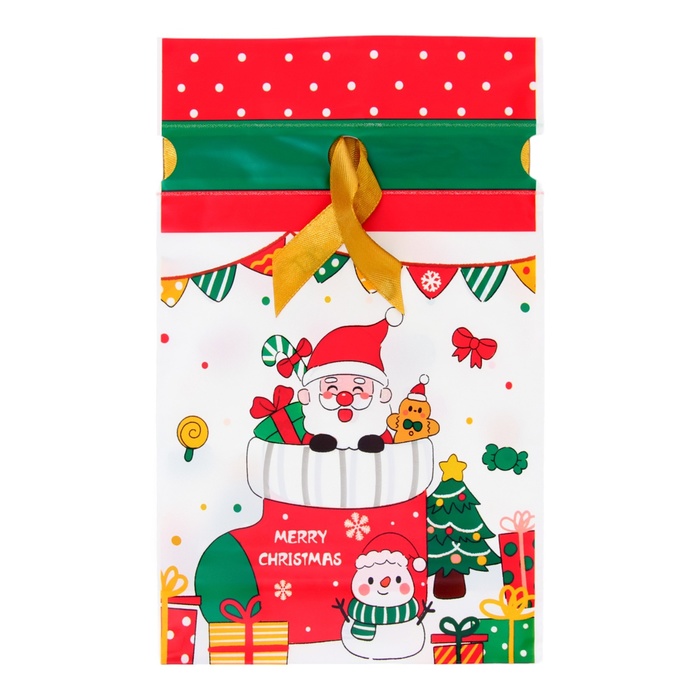Пакет мешочек полиэтиленовый новогодний с завязками - это стильный и практичный способ упаковки подарков.
