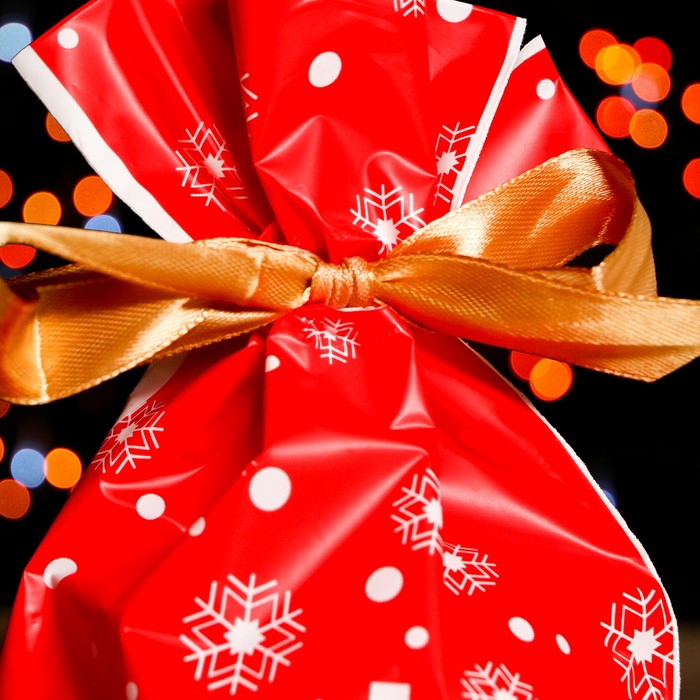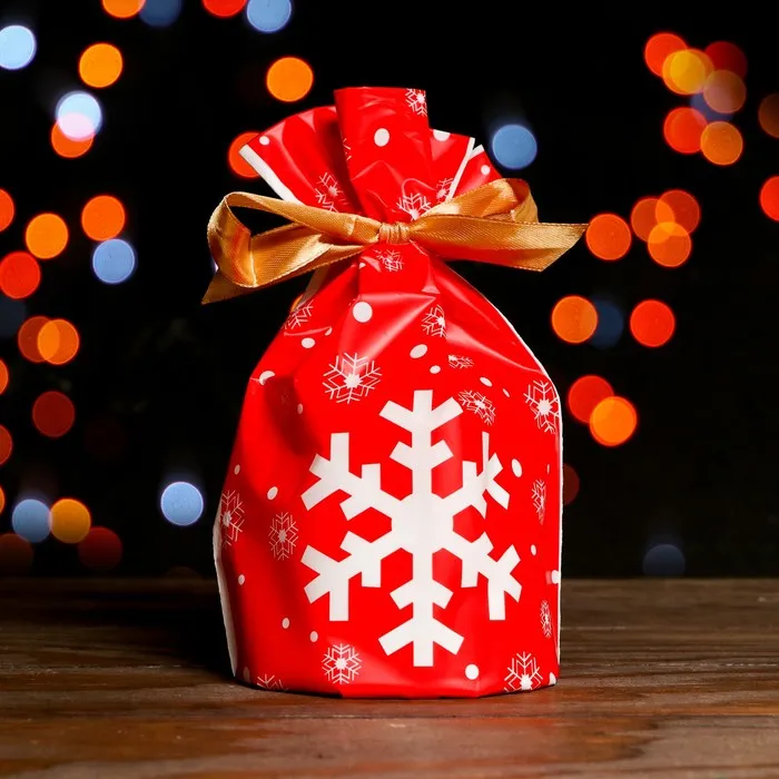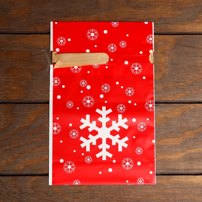 Пакет полиэтиленовый подарочный, с завязками "Снежинки", 15*23см. — Характеристики