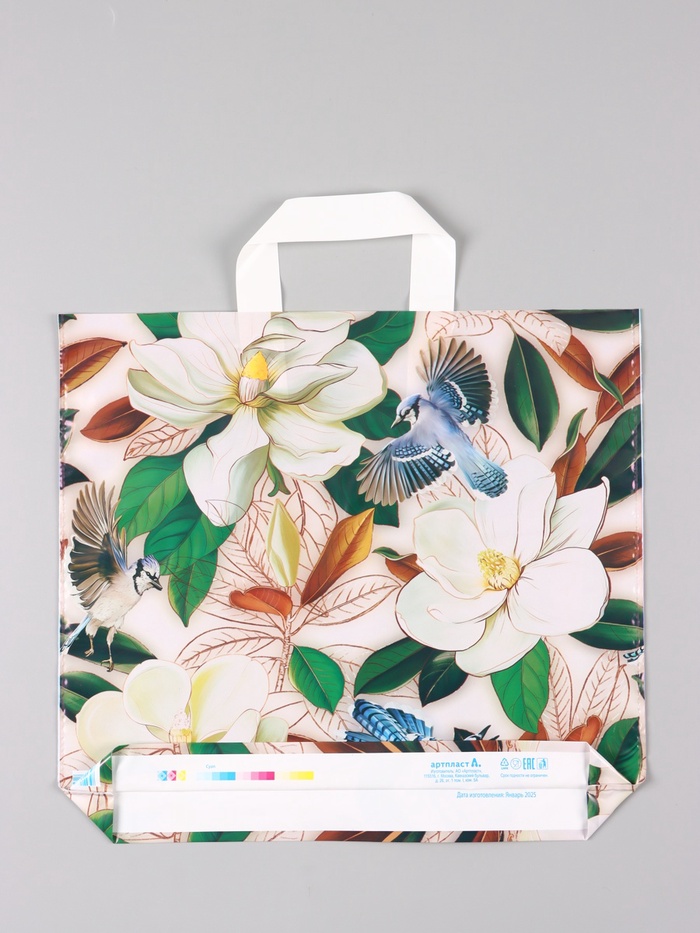 Законченный образ подарка: Этот пакет решает задачу красивой и уместной упаковки. Он добавляет подарку ценности и превращает вручение в небольшой ритуал. Яркий цветочный принт на нейтральном фоне сам становится украшением. Практичный выбор для тех, кто хочет презентовать подарок со вкусом.