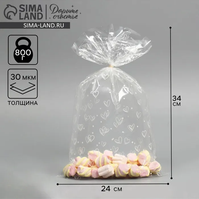 Пакет пропиленовый «Сердечки», 24 х 39 см — Характеристики