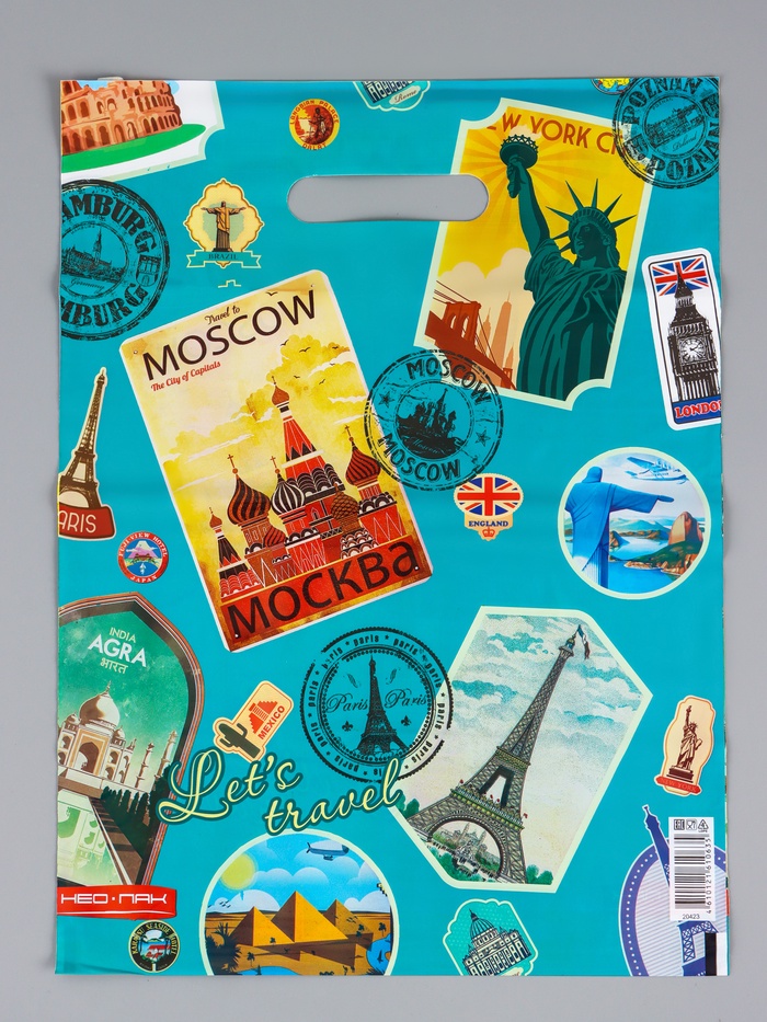 Дух приключений в стильной упаковке. Полиэтиленовый пакет «Путешествие» — это прочная и выразительная упаковка увеличенного размера. Его тематический дизайн, посвящённый городам мира, создаёт настроение свободы и открытий, идеально дополняя подарок для мечтателя или туриста.