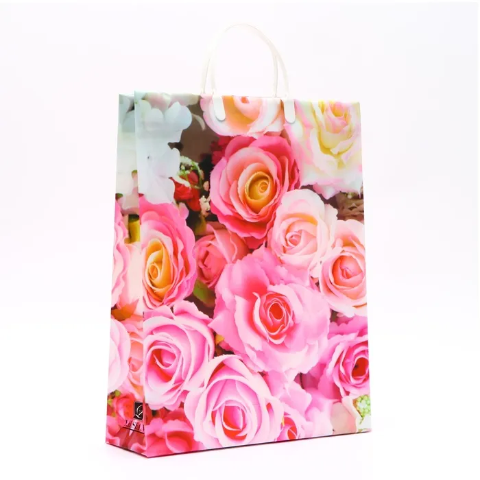 Эргономичные ручки обеспечивают комфортное ношение, а устойчивость к влаге и внешним воздействиям гарантирует надежную защиту содержимого. Пакет может использоваться как для личных нужд, так и в коммерческих целях, например, в магазинах и на предприятиях, заботящихся о качестве упаковки. Благодаря эстетичному внешнему виду и практичности, он становится отличным выбором для упаковки товаров на вынос, подарков или повседневных покупок.