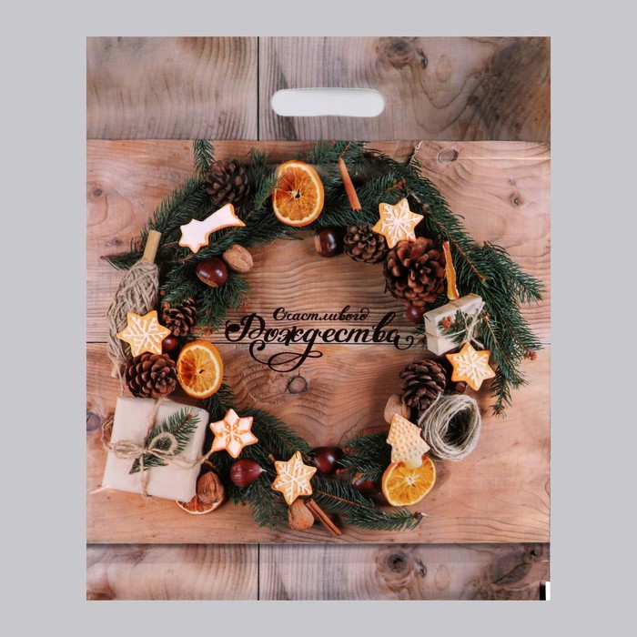 Пакет «Рождественский венок», полиэтилен. с вырубн. ручкой, 38×47 см, 60 мкм набор 5 штук — Характеристики