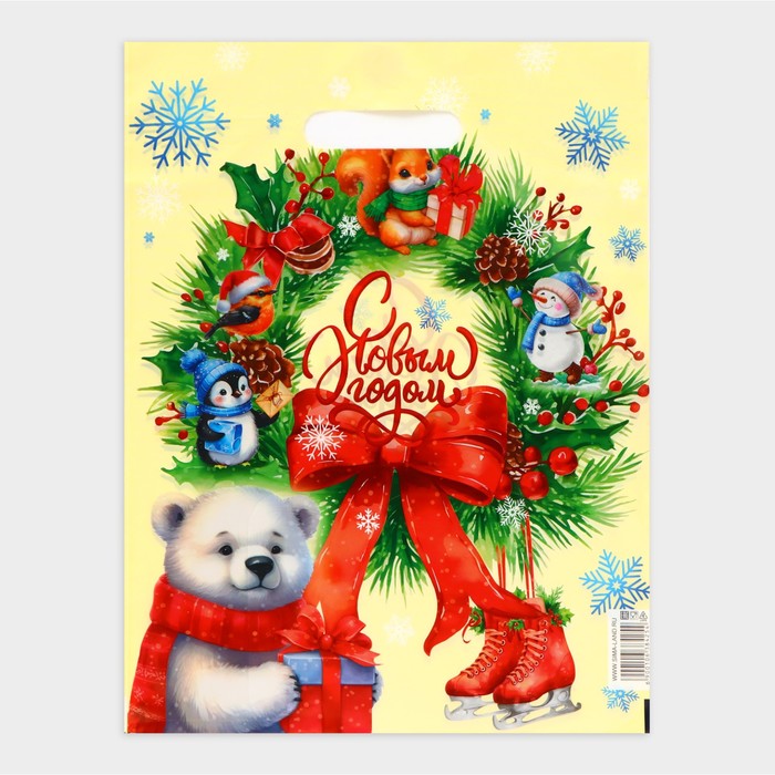 Пакет «Рождественский венок», полиэтиленовый с вырубной ручкой, 30×40 см — Характеристики