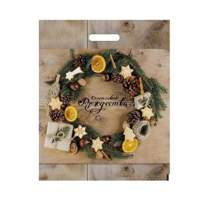 Пакет «Рождественский венок», полиэтиленовый с вырубной ручкой, 38×47 см — Характеристики