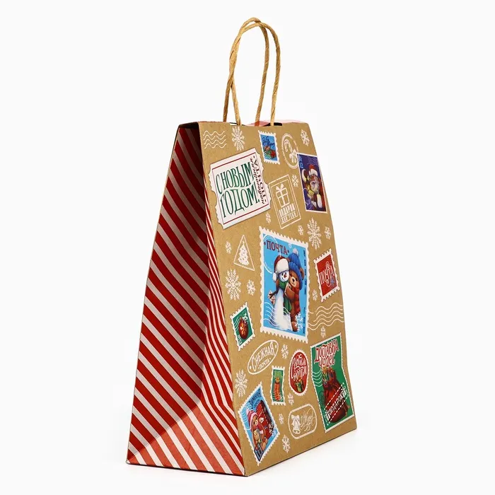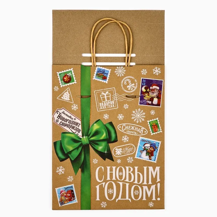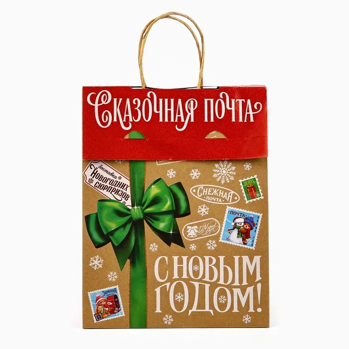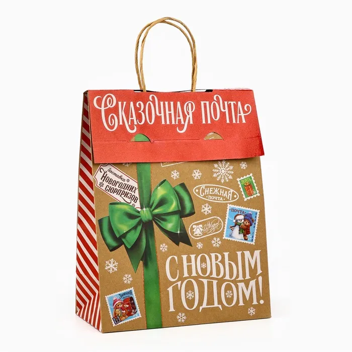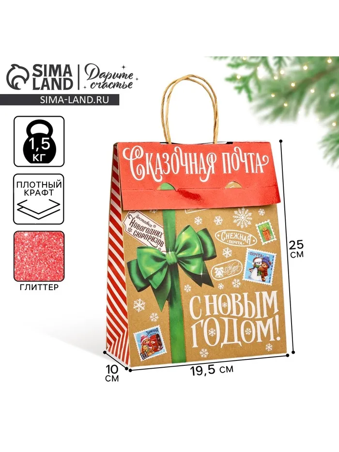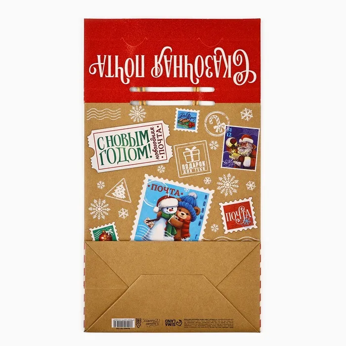Пакет с клапаном «Новогодняя почта», крафт, глиттер, 19.5 х 10 х 25 см — Характеристики