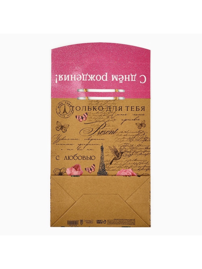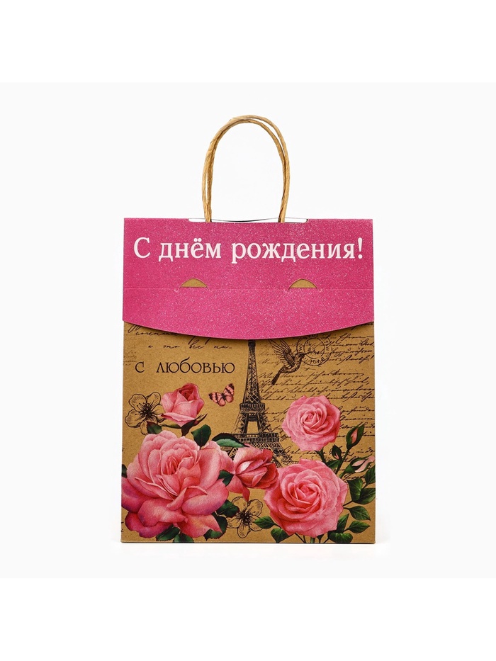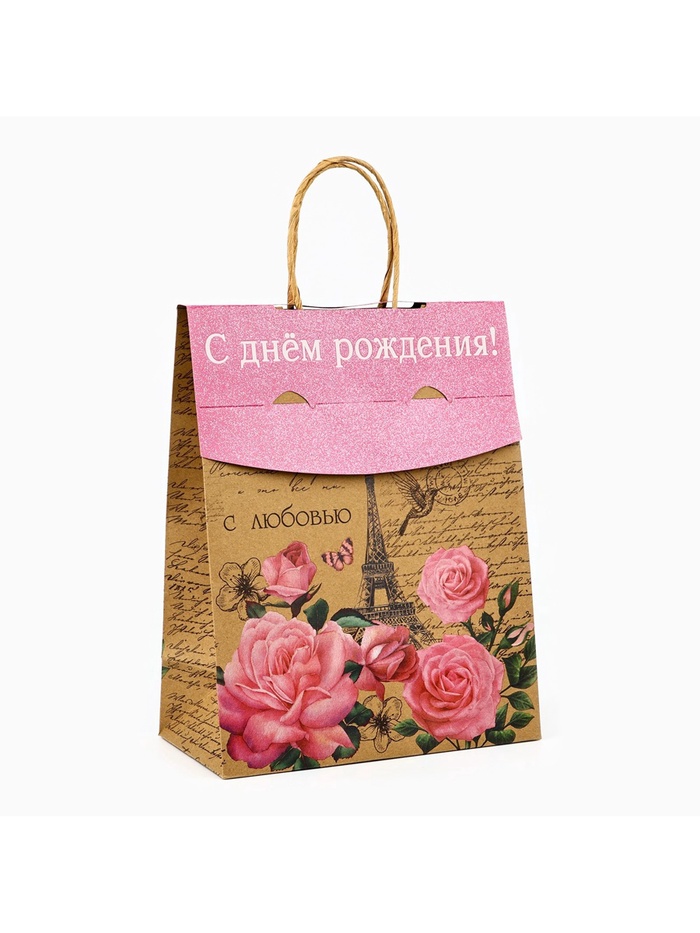 Пакет с клапаном «С Днём рождения», крафт, глиттер, 19.5 х 10 х 25 см — Характеристики