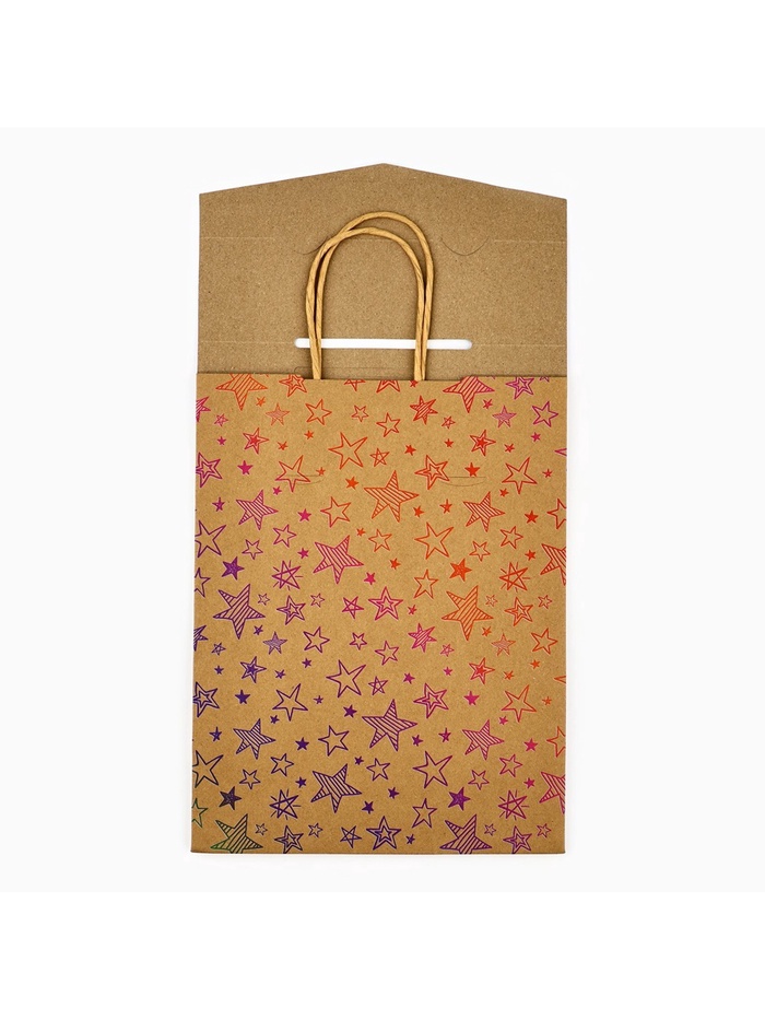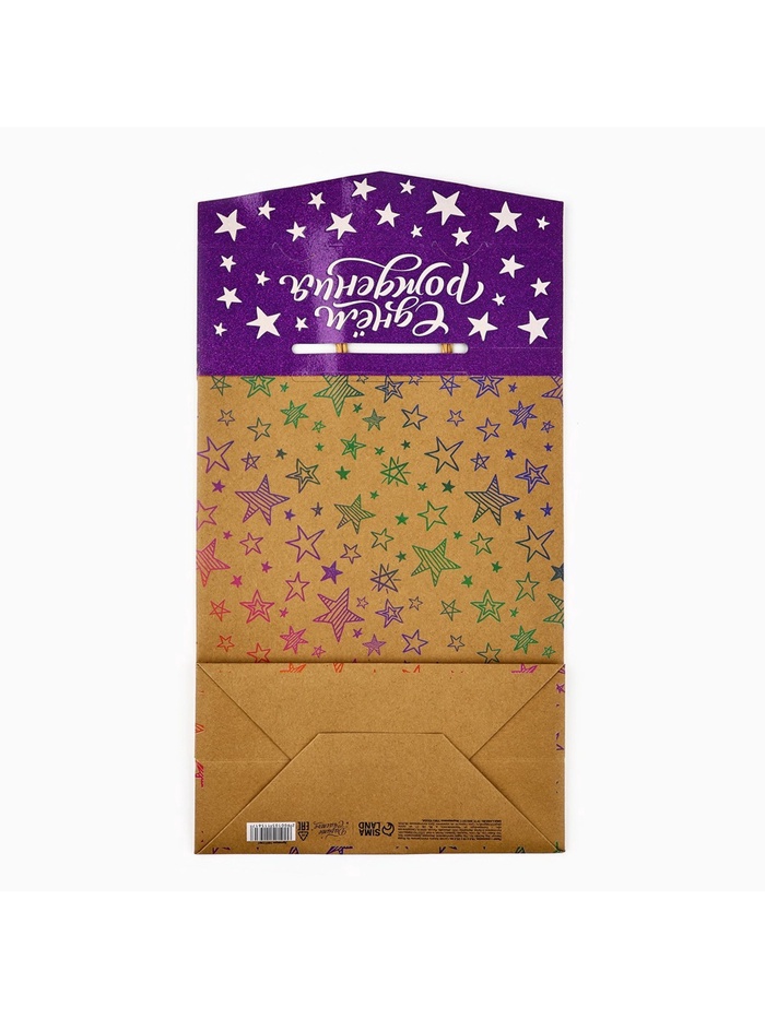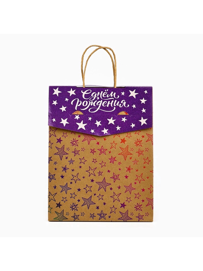 Пакет с клапаном «С Днём рождения», звезды, крафт, глиттер, 19.5 х 10 х 25 см — Характеристики