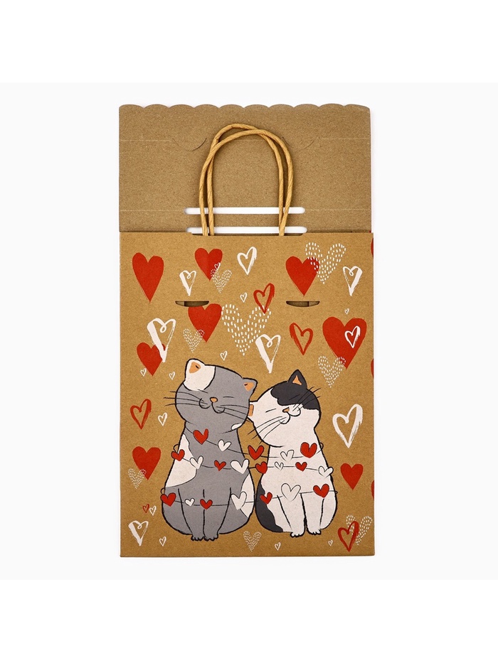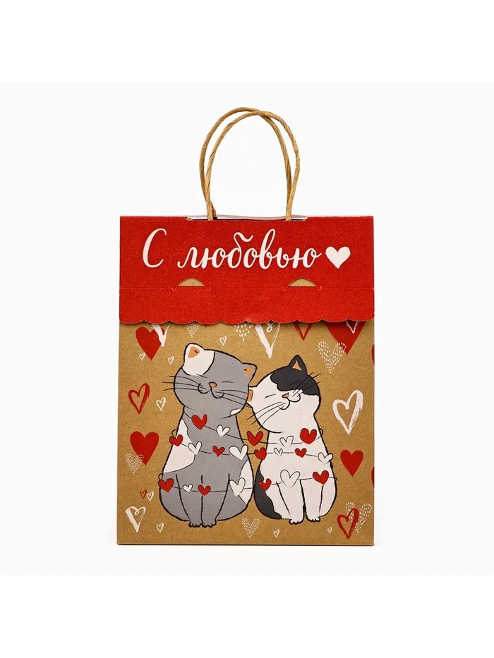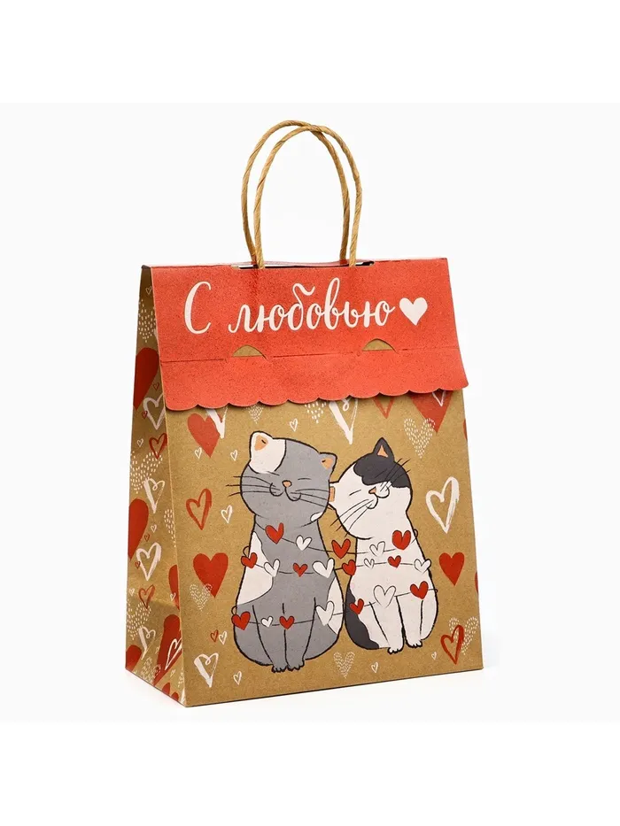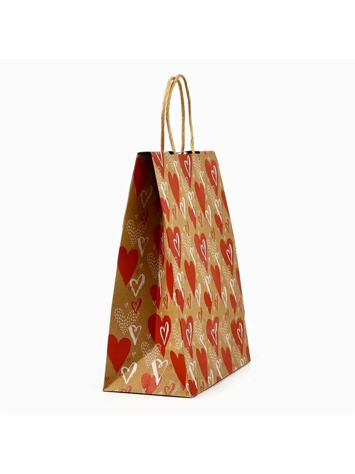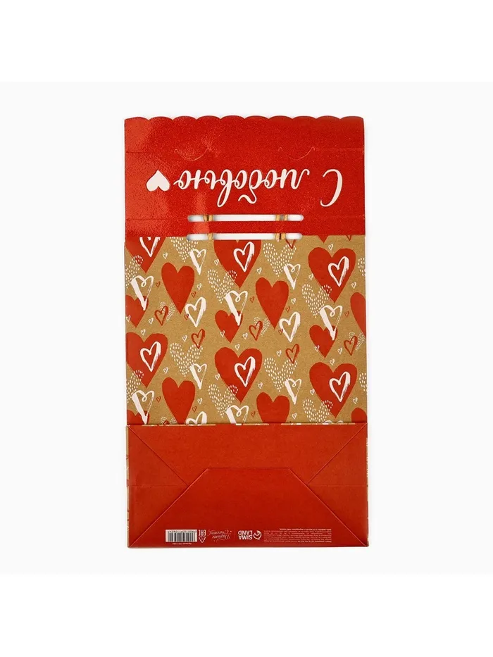 Пакет с клапаном «С любовью», сердца, крафт, глиттер, 19.5 х 10 х 25 см — Характеристики