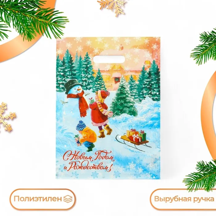 Пакет «С Новым Годом и Рождеством», полиэтиленовый с вырубной ручкой, 30×40 см — Характеристики