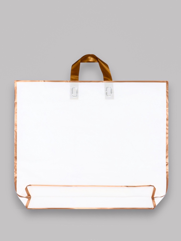 Белый пакет с петлевой ручкой — это простой и надёжный аксессуар для повседневного использования. Его универсальный дизайн и прочная конструкция делают его удобным решением для переноски вещей любого назначения. Пакет подходит для походов в магазин, хранения одежды или транспортировки крупных предметов.