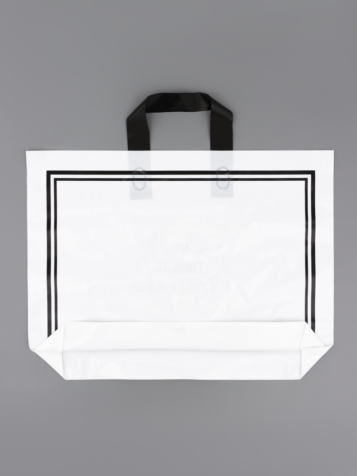Увеличенный объём для стандартных покупок! Белый полиэтиленовый пакет с петлевой ручкой — это практичная упаковка для товаров среднего размера. Сбалансированные параметры подходят для большинства повседневных покупок.