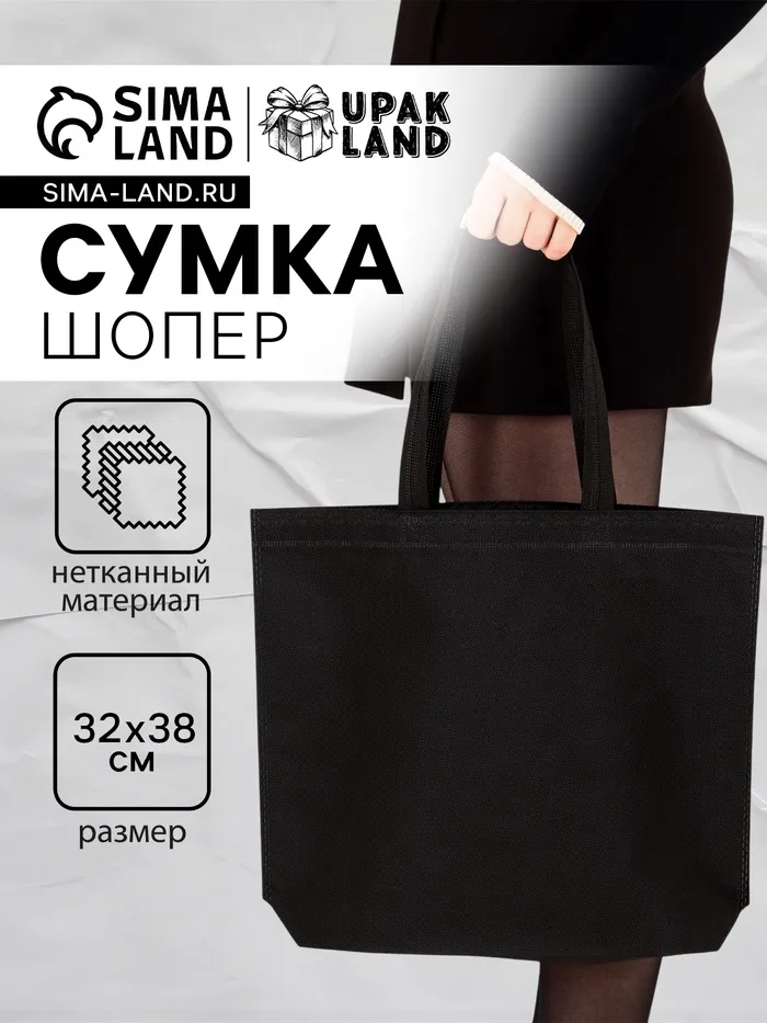 Пакет с петлевой ручкой, сумка - шопер «Эко», 38×32×10 см, чёрный — Характеристики