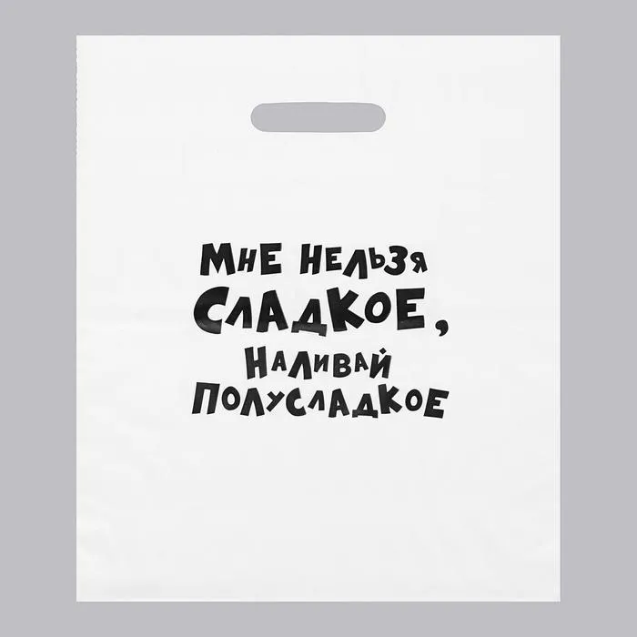 Пакет с приколами, полиэтиленовый с вырубной ручкой, «Мне нельзя сладкое, наливай полусладкое» 31×40 см — Характеристики