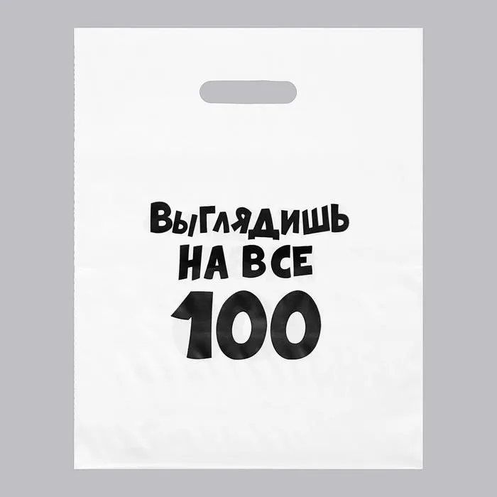 Пакет с приколами, полиэтиленовый, с вырубной ручкой, «Выглядишь на все 100», 31 х 40 см, 60 мкм — Характеристики