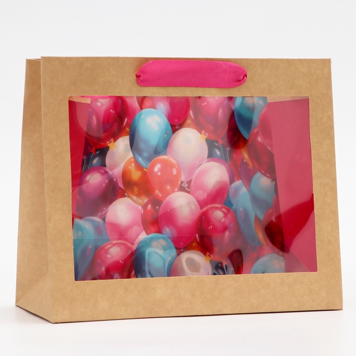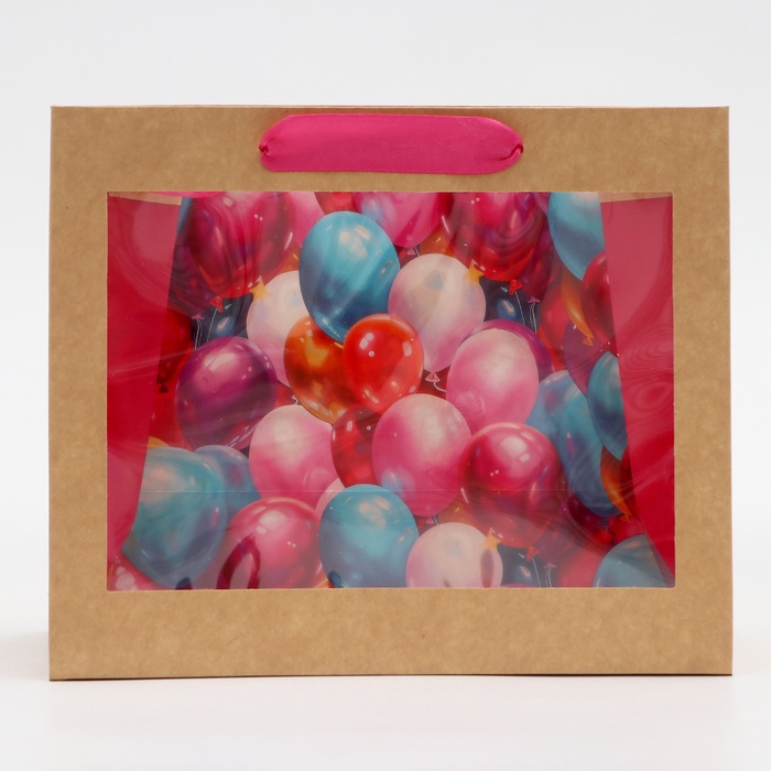 Пакет с PVC окном, «Праздничные шары», 24×11×20 см