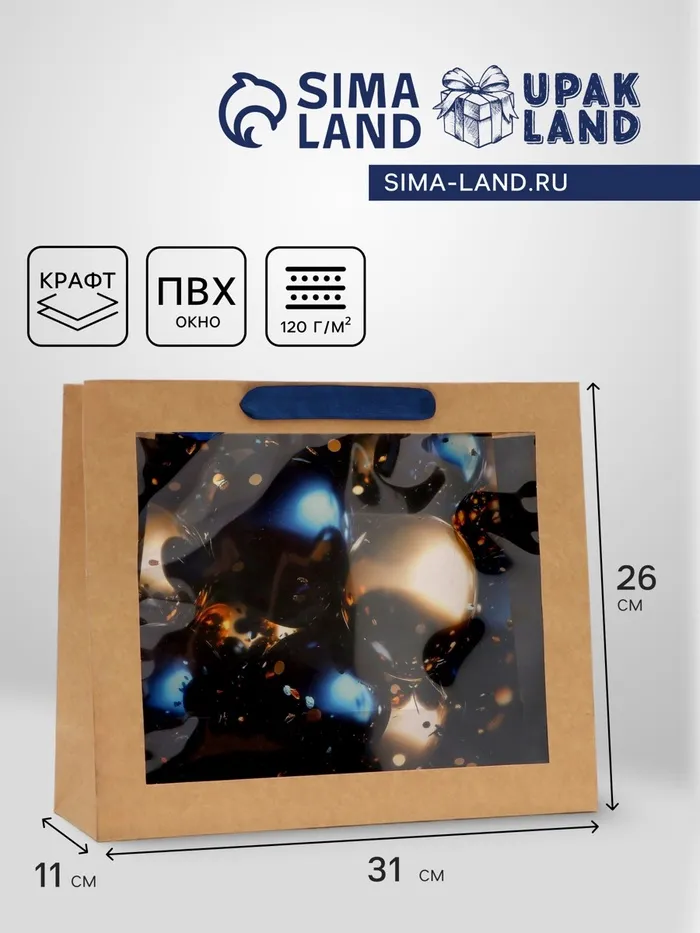 Размер пакета составляет 31 см в высоту, 11 см в ширину и 26 см в глубину, что позволяет разместить внутри разнообразные продукты или предметы.