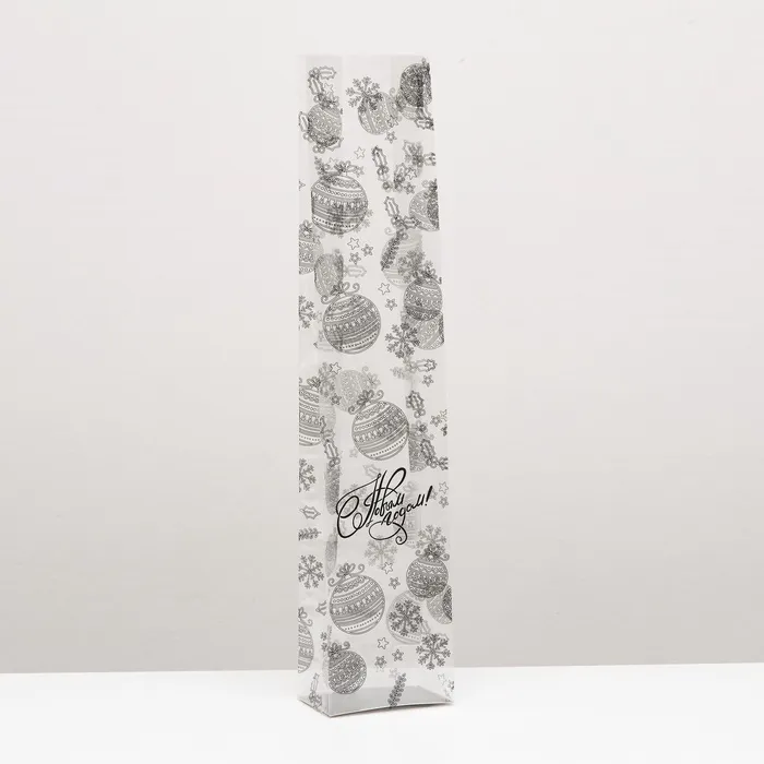Пакет с жестким дном 11×7×53 см Серебристое дно «Новогодние шары» набор 5 шт. — Характеристики