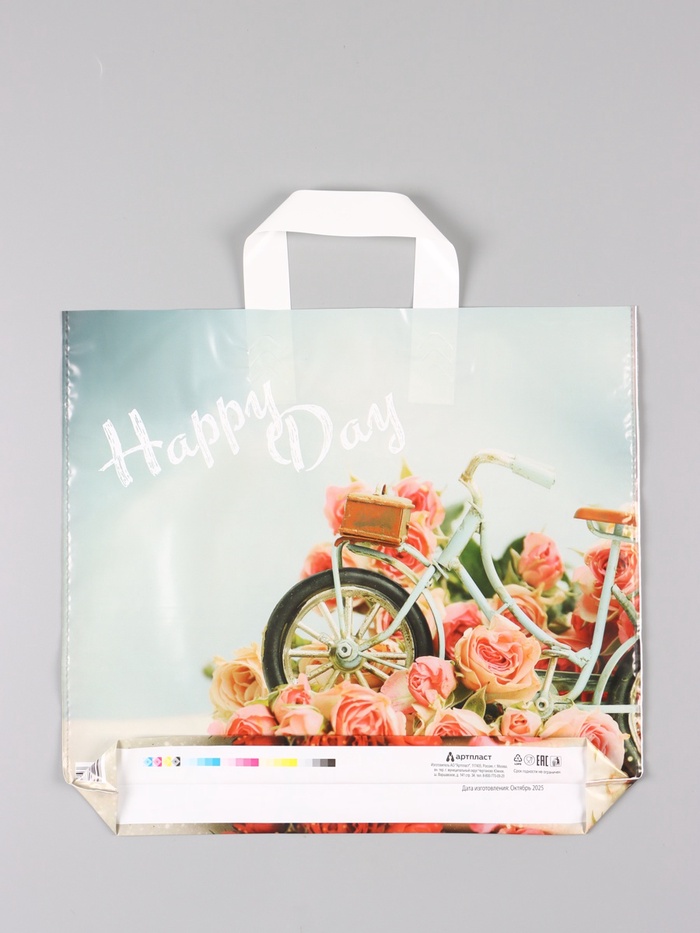 Пакет «Счастливый день», полиэтиленовый с петлевой ручкой, 38×34 + 3 см, 70 мкм — Характеристики