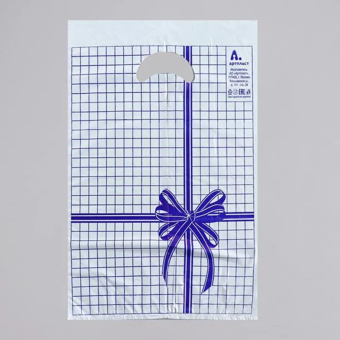 Пакет «Синяя клетка», полиэтиленовый с вырубной ручкой, 22×30 см, 12 мкм — Характеристики