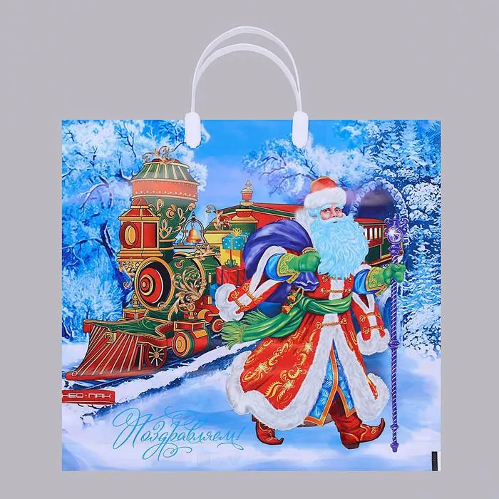 Пакет «Сказочный поезд», полиэтиленовый с пластиковой ручкой, 37×35 см — Характеристики