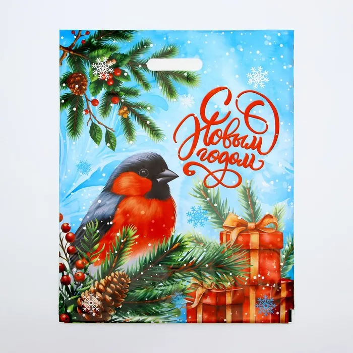 Пакет «Снегирь новым годом», полиэтиленовый с вырубной ручкой, 45×38 см, 60 мк — Характеристики