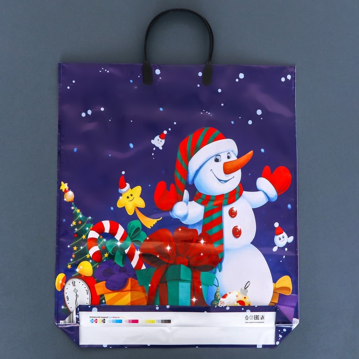Пакет «Снеговичок с подарками», полиэтиленовый с пластиковой ручкой, 38×45 см — Характеристики