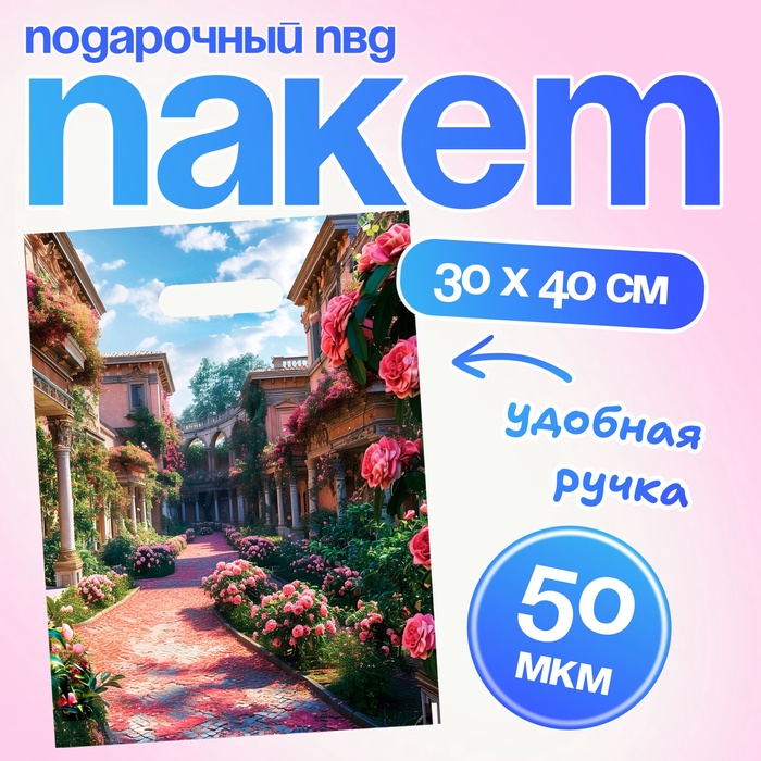 Пакет "Тюльпаны 8 марта", полиэтиленовый, с вырубной ручкой, 30 х 40 см, 50 мкм — Характеристики