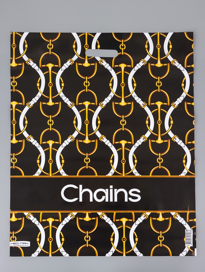 Брутальная графика в премиальном формате. Пакет «Цепи» — это упаковка максимального размера, построенная на контрасте и смелой графике. Изображение цепей на чёрном фоне создаёт мощный, почти индустриальный образ.