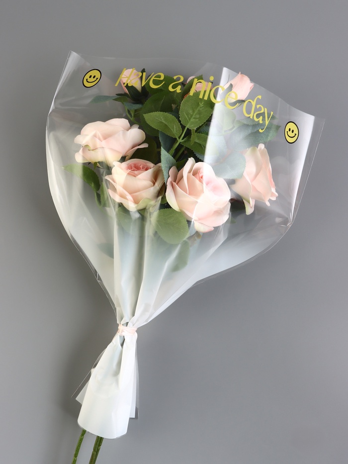 - Прочный материал: Изготовлен из БОПП-пленки. Устойчив к разрывам и защищает букет от повреждений.